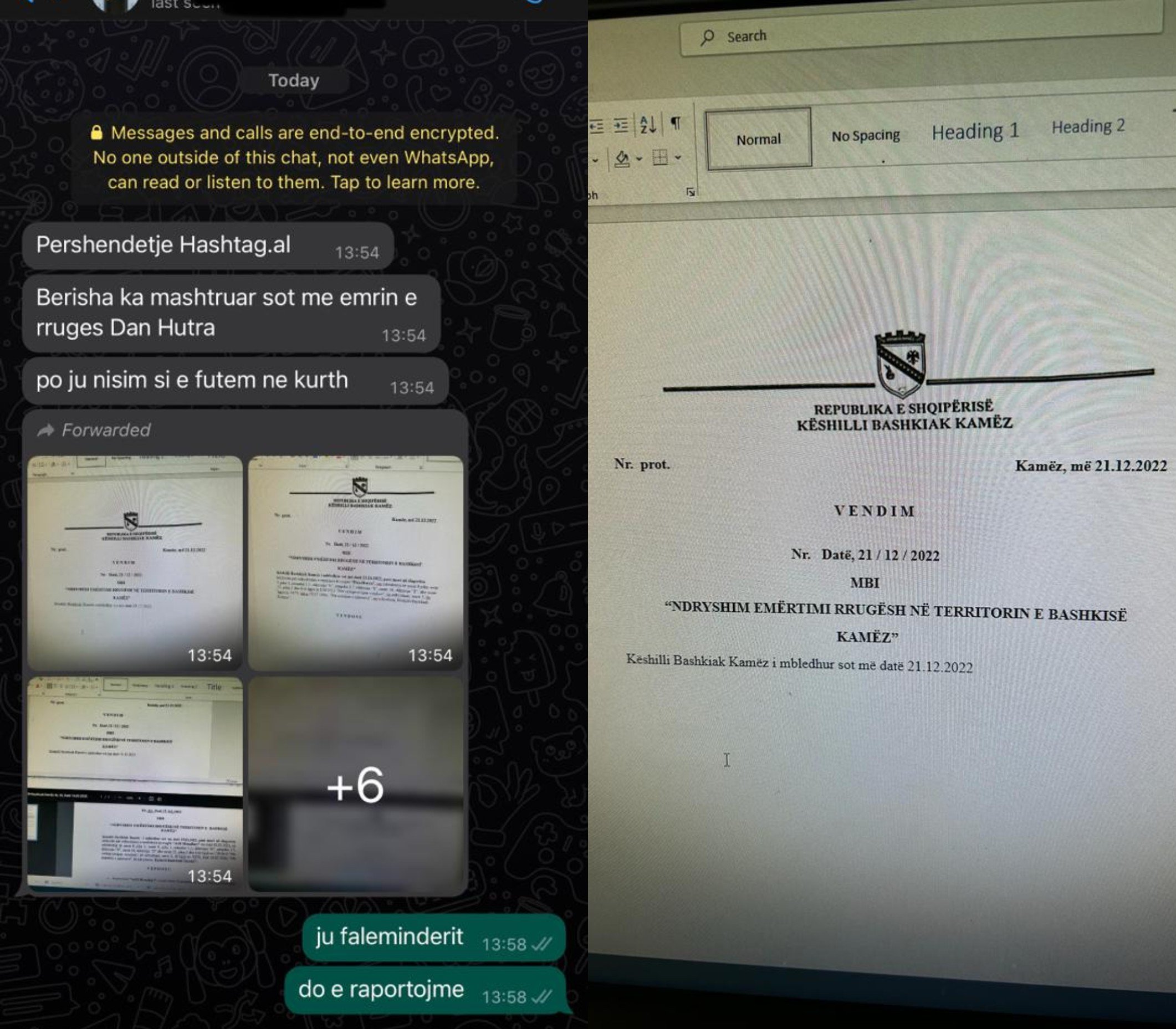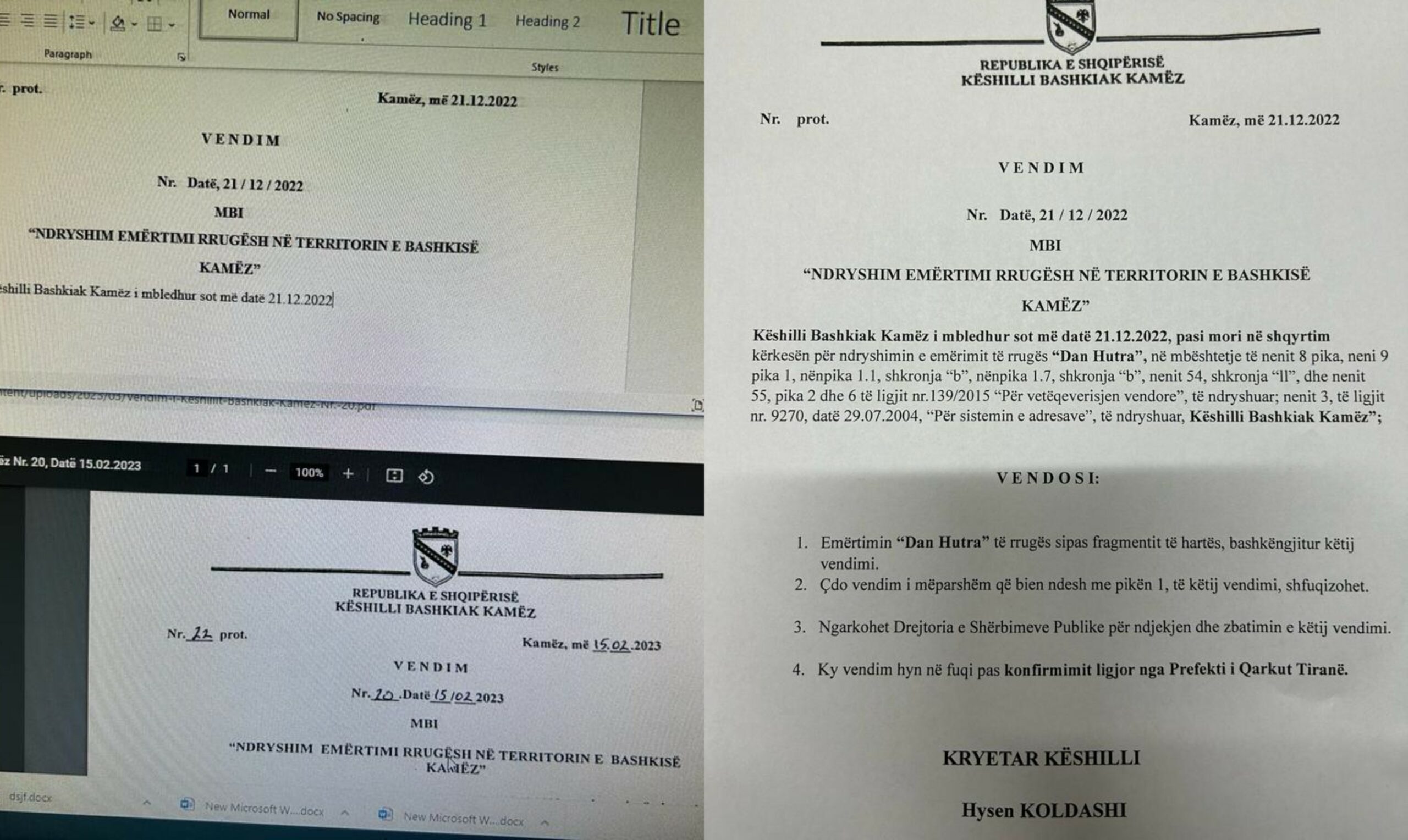 Për t’a bërë më të besueshme historinë, është shpikur edhe propozimi për t’i vendosur emrin një rruge ‘Dan Hutra’. Është marrë një vendim i Këshillit Bashkiak Kamëz për rrugën ‘Adil Himallari’, janë ndryshuar datat dhe është zëvendësuar emri me Dan Hutrën. Ky ‘propozim’ i është dërguar Berishës si ‘provë’. ‘Denoncimi’ tregon edhe një herë vërtetësinë e justifikimeve të Sali Berishës për humbjen shkatërrimtare të 14 majit./Hashtag.al