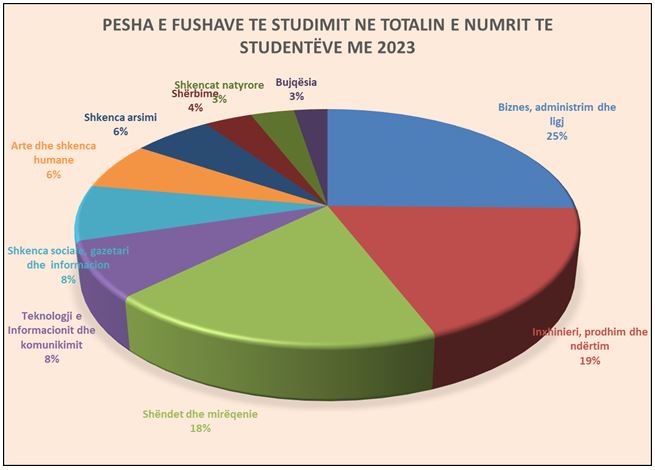 Studentët në degët e bujqësisë zënë vetëm 2.5% të totalit të studentëve, ndërsa ata në fushat e shëndetësisë, rreth 18% e totalit të studentëve.