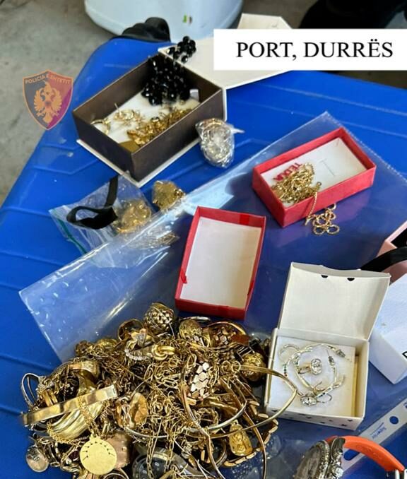 Policia Kufitare e Portit të Durrësit i ka sekuestruar një shtetasi një sasi sasi bizhuterish floriri (177 unaza, varëse, ora), 1900 euro dhe një sasi e vogël lëndë narkotike kokainë.