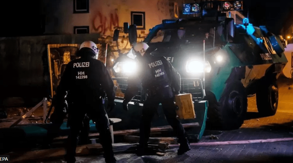 Demonstruesit në qytetin lindor të Leipzig ngritën blloqe rrugësh, ndezën zjarre dhe gjuajtën me gurë oficerët, tha policia, sipas BBC.