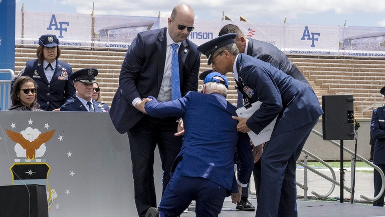 Biden u rrëzua ndërsa po largohej nga skena pas një ceremonie në Akademinë e Forcave Ajrore të SHBA-së në Kolorado të enjten. Megjithëse Shtëpia e Bardhë tha se Biden ishte ‘mirë’ dhe ishte penguar nga një thes me rërë në skenë, pamjet video treguan se presidenti me sa duket kishte nevojë për udhëzime për të gjetur rrugën e tij drejt podiumit fillimisht.