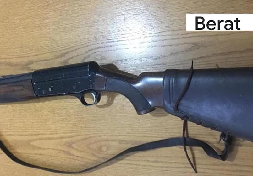 Kjo armë gjahu u sekuestrua në cilësinë e provës materiale, së bashku me armën e zjarrit pistoletë me të cilën shtetasi I. M. dyshohet se qëlloi në ajër.