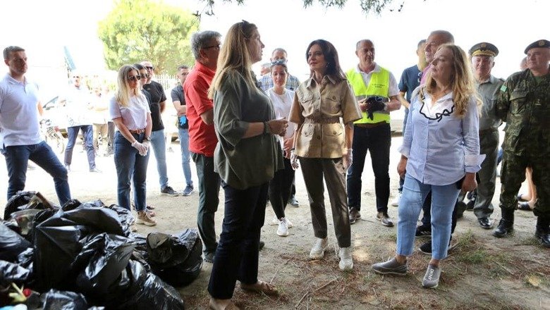 Ministrja Mirela Kumbaro e shoqeruar edhe nga Ministrja e Shtetit Elisa Spiropali, kryetari i zgjedhur i bashkisë Shkodër, Benet Beci, kanë marrë pjesë në aksion masiv pranë zonës së Hidrovorit në Velipojë.