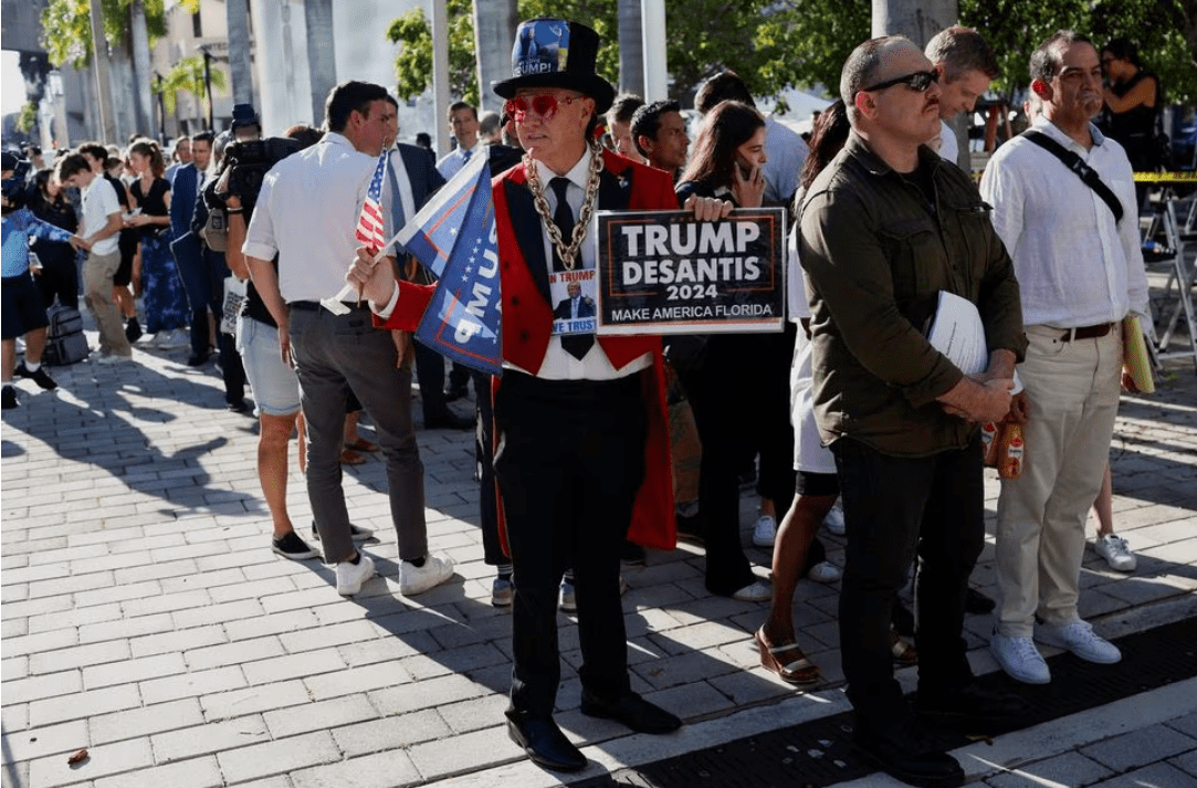 Mbështetësit e Donald Trump u mblodhën të martën jashtë një gjykate në Majami, ku ish-presidenti i SHBA do përballet me akuzat penale se ai mbante në mënyrë të paligjshme dokumente të sigurisë kombëtare kur la detyrën dhe gënjeu zyrtarët që kërkuan t’i rimarrë ato.