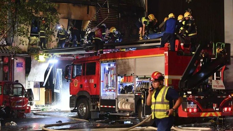 Transmetuesi shtetëror CCTV transmetoi pamjet e më shumë se një duzinë zjarrfikësve duke luftuar zjarrin ndërsa tymi derdhej nga një vrimë e hapur në fasadën e restorantit. Pjesët e qelqit dhe mbeturinat e tjera mbushën rrugë.