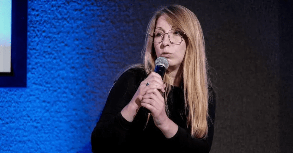 Një postim i ngjitur në profilin e saj në Twitter tregon Amelina duke bërë një foto të një ndërtese të bombarduar në Ukrainë.