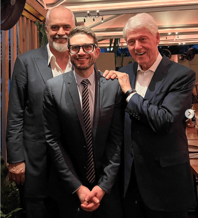 Alex Soros ka hedhur në Instagram foto nga ceremonia e dekorimit në Tiranë të ish-presidentit amerikan Bill Clinton si dhe ditëlindja e kryeministrit Rama.