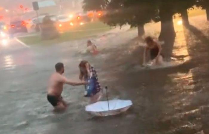 Gjatë një përmbytjeje në qytetin rus Kolomna të premten, një qytetare pësoi djegie në këmbët e saj kur rrufeja goditi një skuter elektrik të parkuar aty pranë. Ngjarja është filmuar në video dhe ka bërë xhiron e shpejtë në rrjetet sociale.