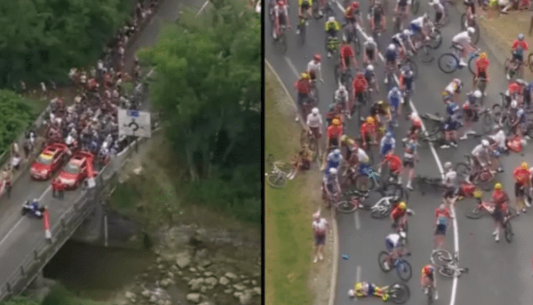 Teksa afrohej fundi garës ditore, masa e çiklistë garues ecnin me shpejtësi pranë njëri-tjetrit në rrugën rurale franceze, para se të ndodhte përplasja e rëndë.