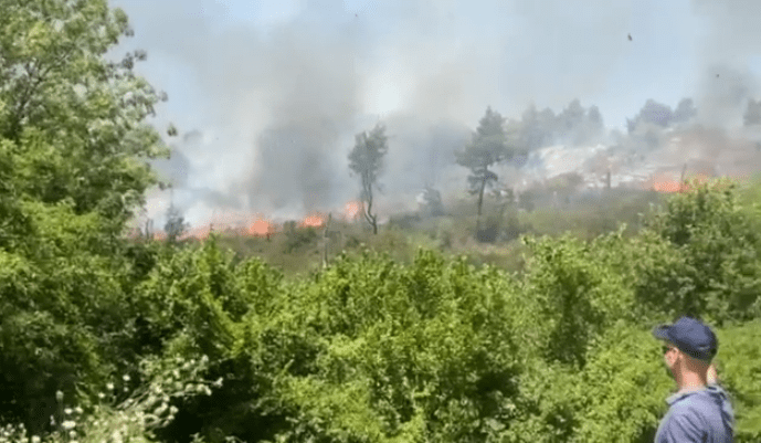 Flakët të favorizuara edhe nga era kanë kaluar në anën tjetër të rrugës për t’u përhapur drejt zonës së pyllëzuar në Kraps.