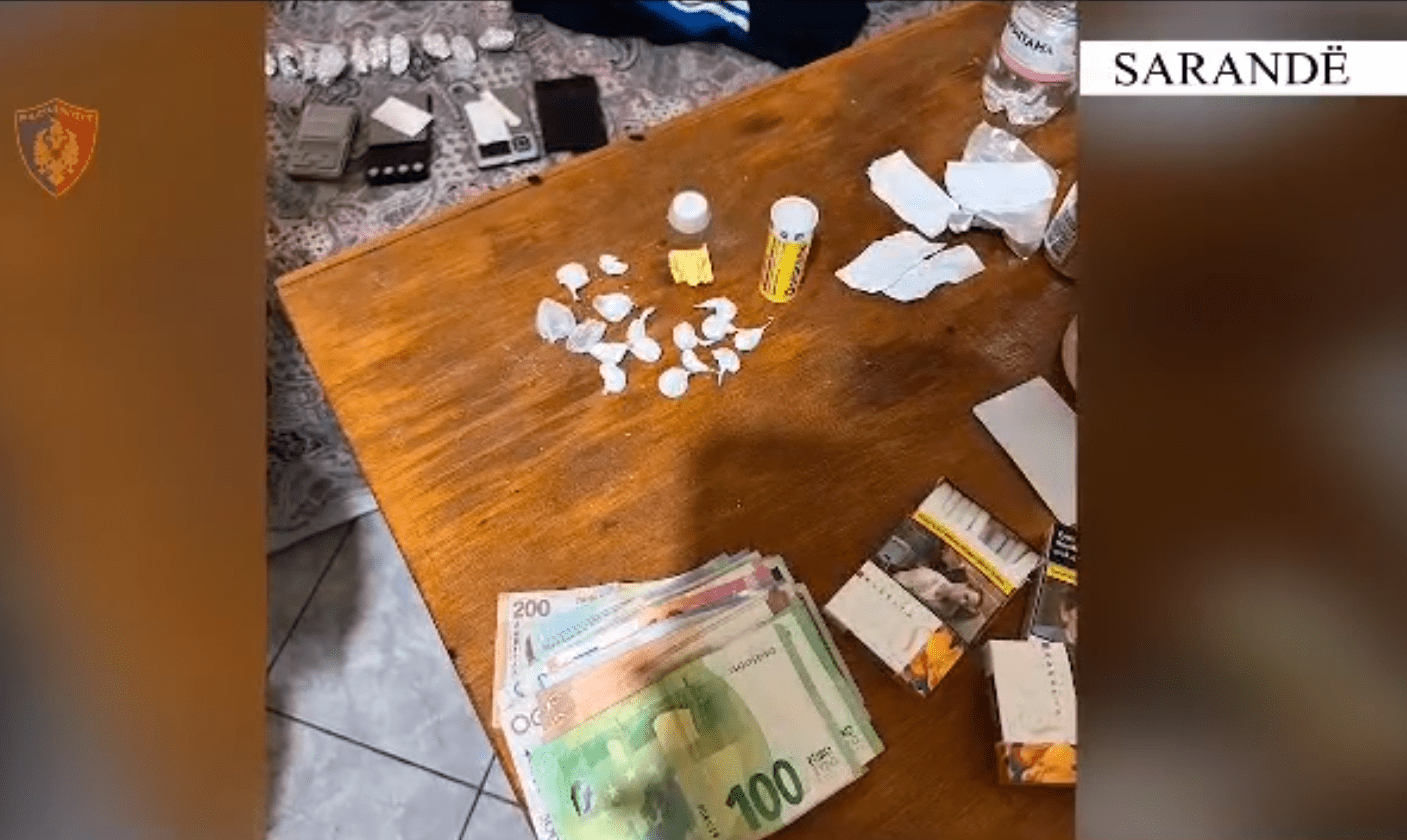 E.H., 54 vjeç, banues në Ksamil, për veprën penale “Prodhimi dhe shitja e narkotikëve”. Gjatë kontrollit fizik dhe kontrollit në banesën e këtij shtetasi, shërbimet e Policisë kanë gjetur dhe sekuestruar 27 doza me lëndë të dyshuara narkotike kokainë dhe kanabis, 3 peshore elektronike për ndarjen e lëndëve narkotike në doza, 3 celularë, si dhe 13 400 lekë të rinj, 530 euro, 140 dollarë dhe 60 paund që dyshohet se janë përfituar nga veprimtaria kriminale;