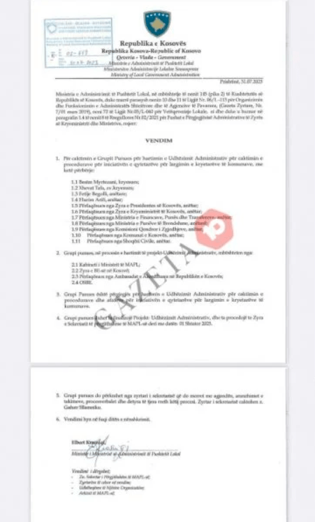 Kjo ministri tashmë ka caktuar grupin punues për hartimin e Udhëzimit Administrativ për caktimin e procedurave për iniciativën e qytetarëve për largimin e kryetarëve të komunave.