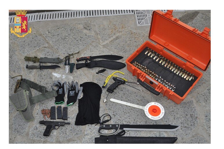 Pas kryerjes së kontrollit fizik, efektivët gjetën në shtëpinë e italianit një arsenal armësh ushtarake ku përfshiheshin: TNT, siguresa për granata dore, 29 granata, detonatorë elektrikë dhe siguresa, një Tokarev TT-33 cal.7.62, një pistoletë e prodhimit sovjetik, e konsideruar si një nga armët më të fuqishme në botë e pajisur me 1500 fishekë dhe tre karikatorë të vetëm, por edhe armë të ftohta, hanxharë, thika ushtarake të prodhimit sovjetik dhe një llastiqe profesionale.