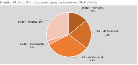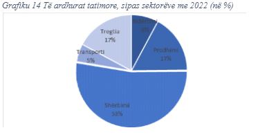 Nga të dhënat për 12-mujorin 2022, lidhur me kontributin e sektorëve të ekonomisë në totalin e të ardhurave nga administrata tatimore rezulton se peshën kryesore e zë sektori i “Shërbimit” përkatësisht me 32 %, sektori i “Tregtisë” përkatësisht 30 % dhe sektori i “Prodhimit” përkatësisht me 21 %.