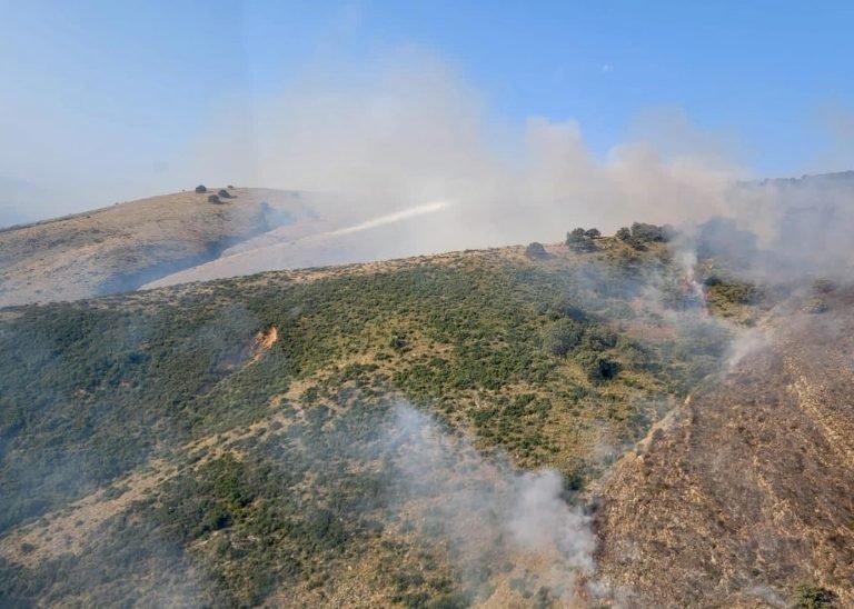 Mbrëmjen e djeshme u ndërhy edhe me helikopterin Cougar, i cili është rikthyer edhe sot në mëngjes në zonë. Puna është e vështirë për shkak të terrenit, ku është përhapur zjarri.