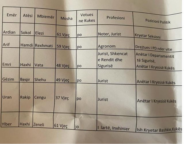 Ndër emrat bën pjesë edhe kreu i degës së PD-së Kukës që kontrollohet nga Basha, Arif Rexhmati.