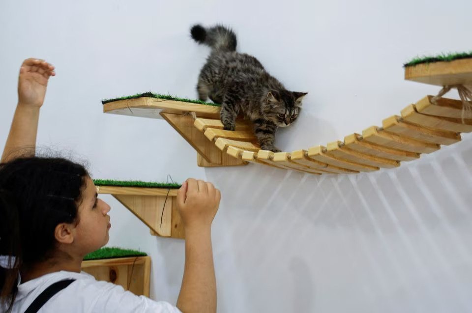 E frymëzuar nga pasioni i saj për kafshën me gëzof, Naeema Mea’bed hapi ‘MEOW Cat Café’ në Rripin e Gazës këtë javë, duke shpresuar t’u sjellë pak gëzim adhuruesve të maceve, duke rritur ndërgjegjësimin për rritjen e kafshëve shtëpiake.