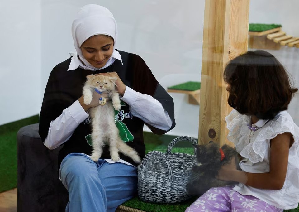 Për Hala Abu Maghaseeb, 14 vjeç, e cila deri më tani nuk i ka bindur prindërit e saj që t’i blejnë një mace shtëpiake, kafeneja ishte një surprizë e këndshme dhe e mirëpritur gjatë pushimit të saj veror në shkollë.