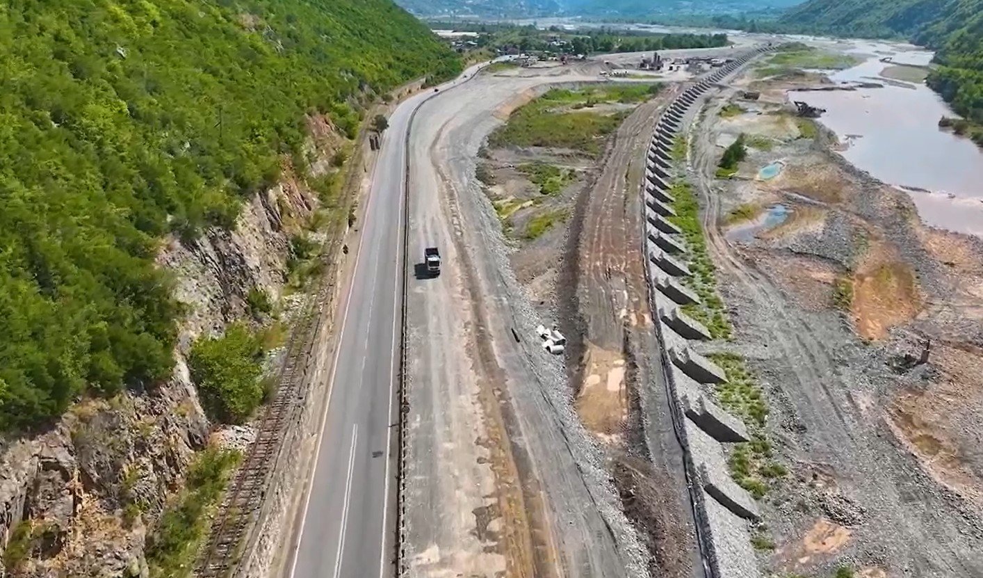 “Kjo është një pjesë e rëndësishme e korridorit të VIII-të, që nis nga fshati Labinot Fushë dhe vazhdon për 44 kilometra në një rrugë me të gjithë parametrat e autostradës moderne sa i takon kushteve të sigurisë dhe të kategorisë së rrugës dhe vazhdon deri në afërsi të Qafë Thanës.
