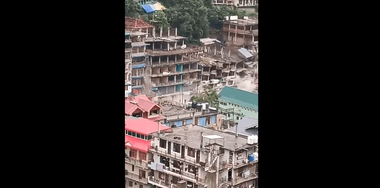 Një video e mëngjesit të së enjtes tregoi se si të paktën nëntë ndërtesa shumëkatëshe në distriktin Kullu të Himachal Pradesh ishin rrëzuar për shkak të rrëshqitjeve të dheut të shkaktuara nga shirat e musonit.