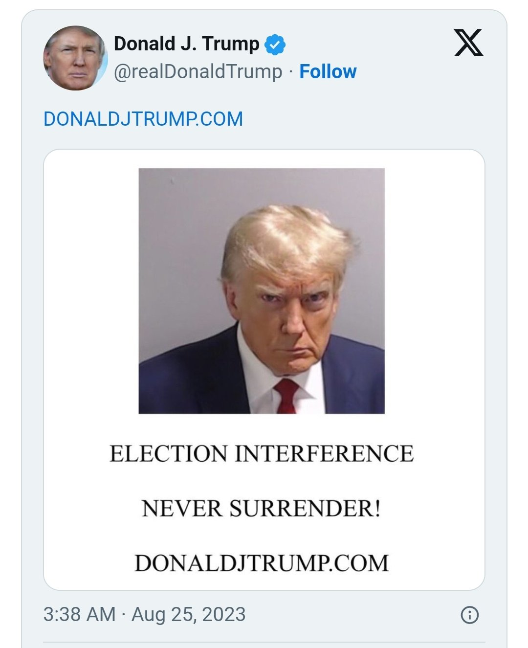 Ish-presidenti i SHBA-së, Donald Trump, është rikthyer në platformën X (Twitter), duke postuar mesazhin e tij të parë në atë rrjet social pas më shumë se dy vjet e gjysmë pauze, dhe pak pasi u dorëzua në burgun në Atlanta, Georgia, me akuzën e komplotit për përpjekje për të ndryshuar humbjen e tij elektorale në zgjedhjet presidenciale të vitit 2020.