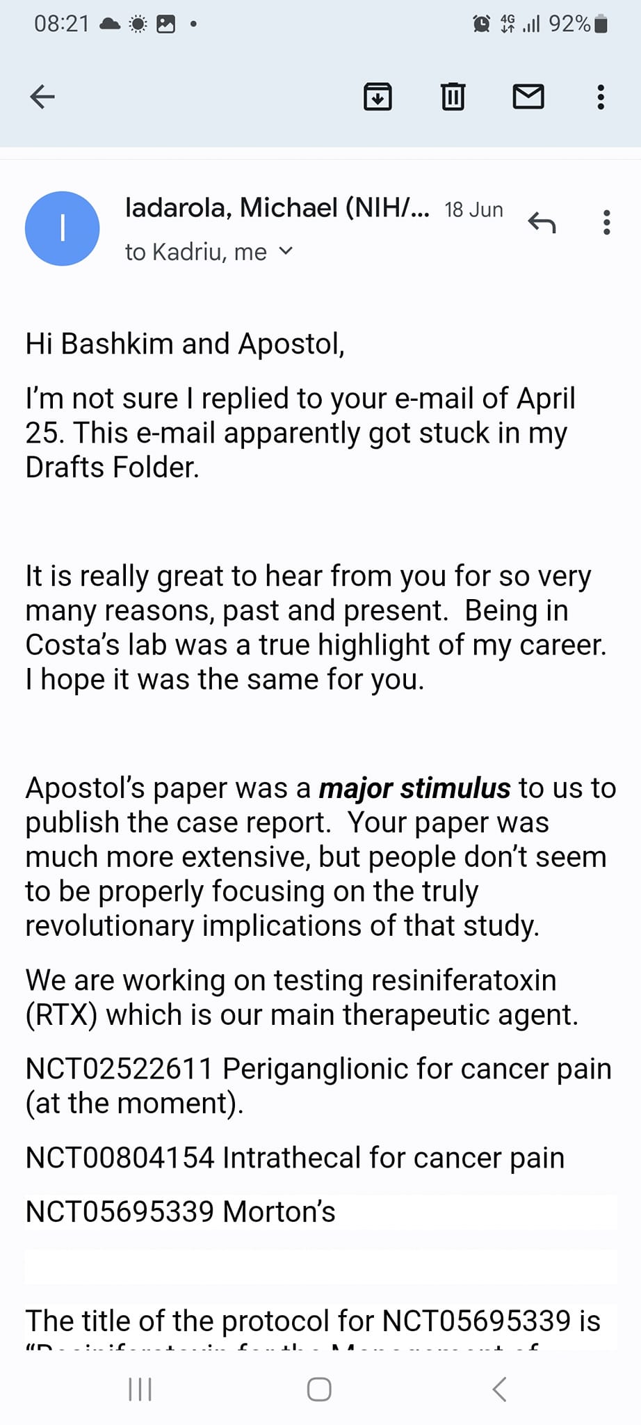 Në një shënim të gjatë, mjeku i njohur rendit punimet e botimet e tij shkencore në disa nga revistat më të mira botërore në fushën e mjekësisë, të cilat nuk u interesojnë strukturave që vlerësojnë aftësitë e punonjësve shëndetësorë.