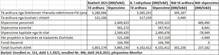 Në vendimin e botuar në Fletoren zyrtare për buxhetin e ASHK parashikohet që për periudhën janar-dhjetor 2023 totali i të ardhurave të kadastrës për periudhën janar-dhjetor 2023 të shtohen 301,2 milionë lekë, ndërsa shpenzimet të rriten 237,1 milionë lekë.