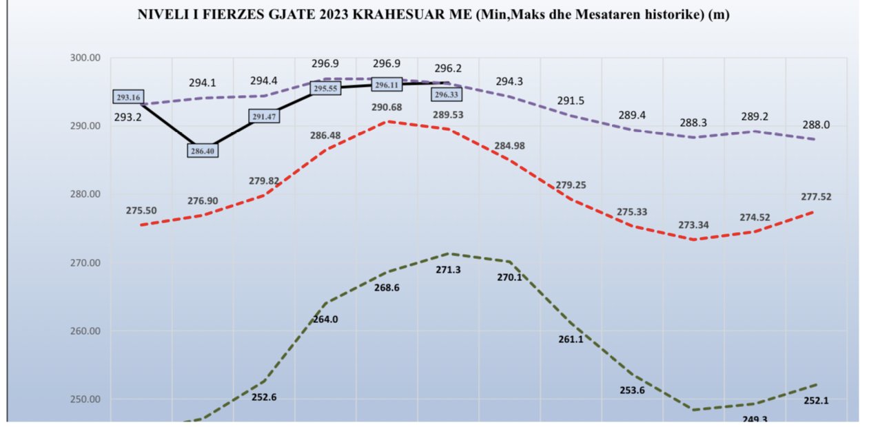 Të dhënat e publikuara nga Enti Rregullator i Energjisë sipas raportimeve të bëra nga kompanitë publike të sektorit tregojnë se nga janari në qershor Fierza ka qenë dukshëm mbi mesataren historike duke nisur në muajin e parë më nivelin 293.16 metra ndërkohë që mesatarja historike për këtë muaj është 275.5 metra.