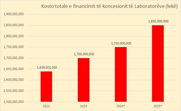 Sipas projektbuxhetit afatmesëm 2023-2025 që Ministria e Shëndetësisë ka dorëzuar në Ministrinë e Financave, parashikohet që financimi i koncesionit të laboratorit të arrijë në 1,75 miliardë lekë në vitin 2024, nga rreth 1,7 miliardë lekë që është aktualisht.