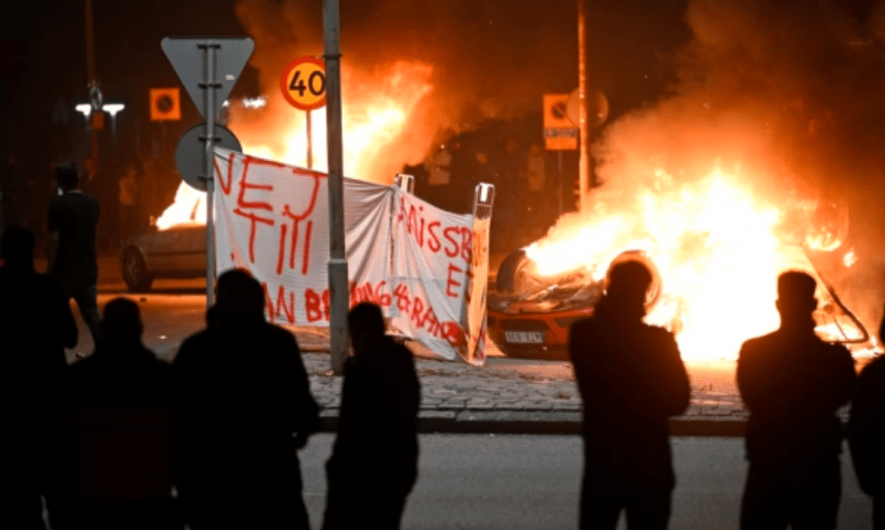 Përleshje të dhunshme shpërthyen të dielën në një lagje emigrantësh në qytetin e tretë më të madh të Suedisë, pasi një protestues kundër islamit e dogji një kopje të Kuranit, tha policia suedeze të hënën.