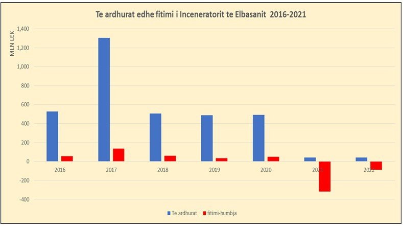 Sipas të dhënave nga bilanci në vitin 2022 të ardhurat e inceneratorit të Elbasanit që është aktualisht nuk është në punë ishin 41 milionë lekë (rreth 400 mijë euro). Aktiviteti i impiantit ishte me rreth 86 milionë lekë humbje ose rreth 800 mijë euro.