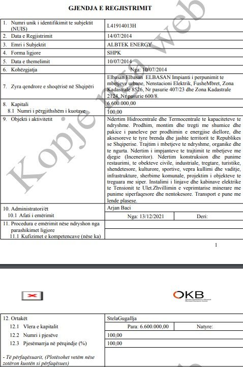 Inceneratori i Elbasanit për trajtimin e mbetjeve urbane me djegie duhet të ishte transferuar 7 bashkive të Rajonit, ku aksioneri kryesor duhej të ishte bashkia Elbasan, por impianti nën sekuestro zyrtarisht është nën pronësisë e kompanisë “ALBTEK ENERGY” në pronësi 100 për qind të Stela Gugallja.