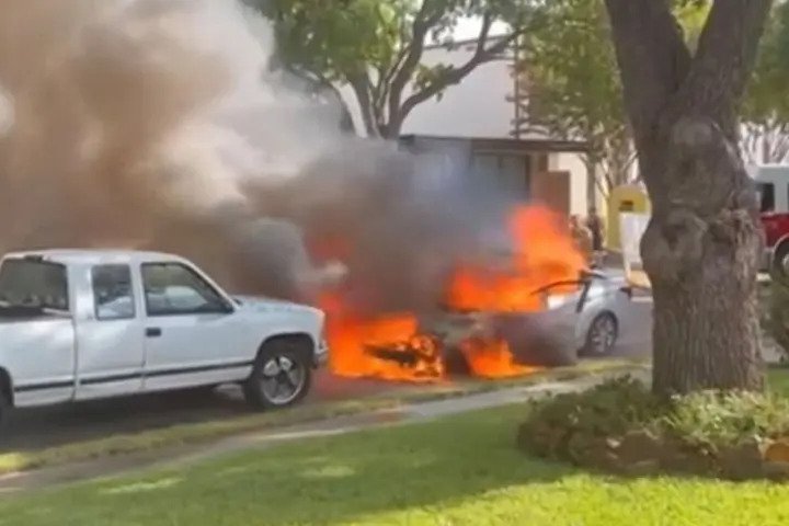 Ajo e tërhoqi zvarrë 58-vjeçarin nga makina përpara se flakët të përfshinin plotësisht mjetin.