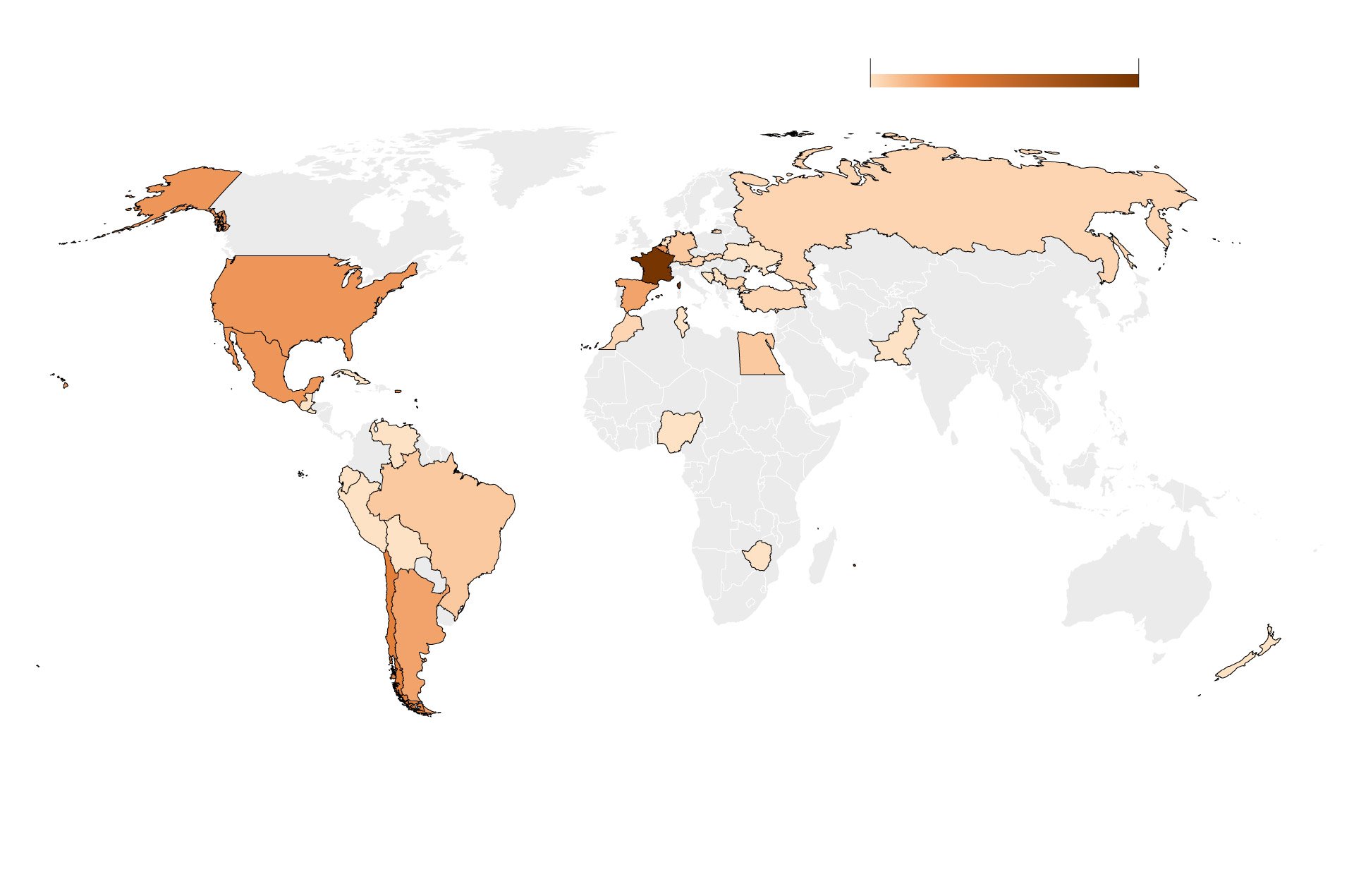 The Post është në gjendje të identifikojë 105 nga 181 lojtarët në hetim. Kjo hartë është nxjerrë nga ajo analizë.