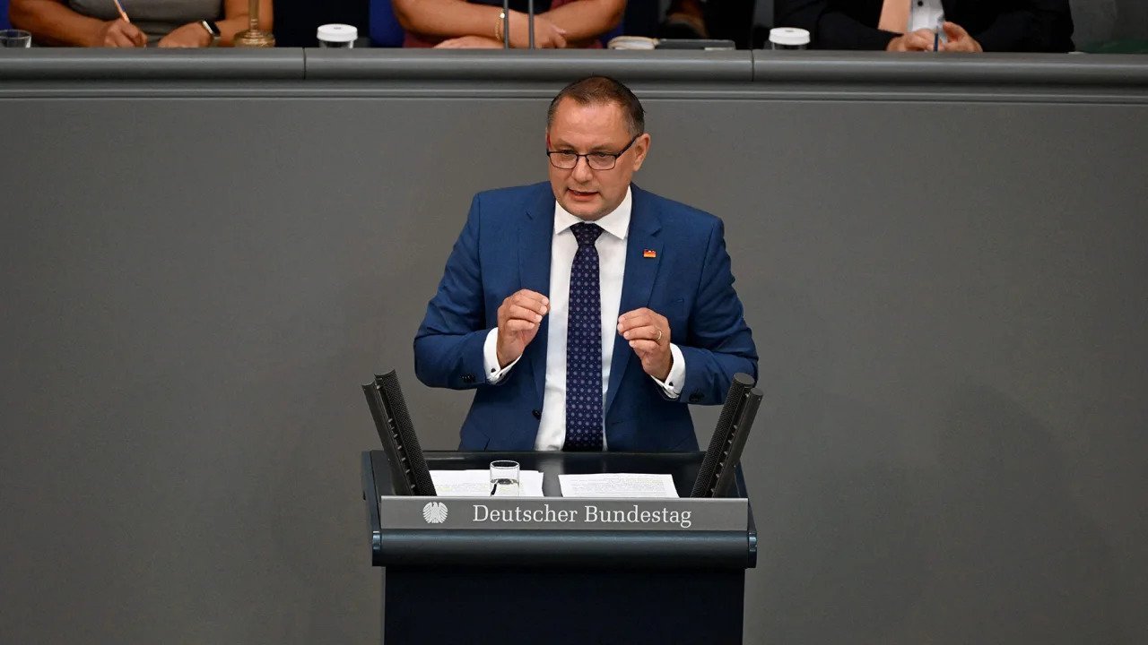 Tino Chrupalla, bashkëdrejtues i AfD-së, mban një fjalim për buxhetin e shtetit për vitin 2024 në Bundestag