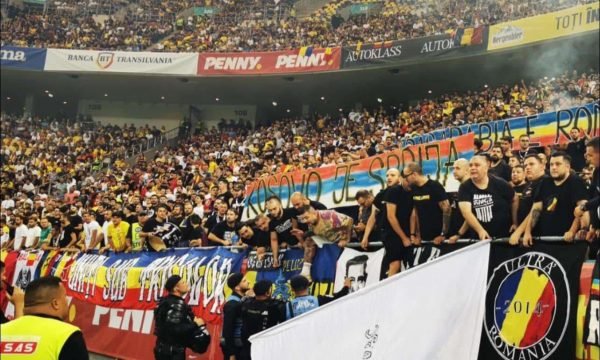 Rumunët nuk ndaluan së brohorituri “Kosova është Serbi”, si dhe “Serbi, Serbi”.