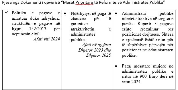 Nga viti 2014 e deri në fund të vitit 2022, pagat reale në sektorin shtetëror janë rritur rreth 20%, teksa plani i ri synon të aplikojë zgjerim me nga 15% për dy vitet në vijim 2023 dhe 2024.