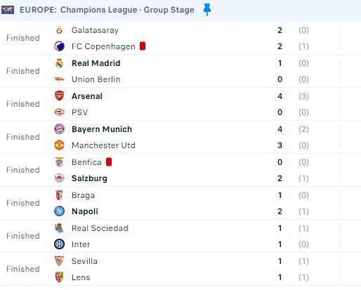 Ndërsa fitore mori edhe Real Madrid, Arsenal edhe Napoli.