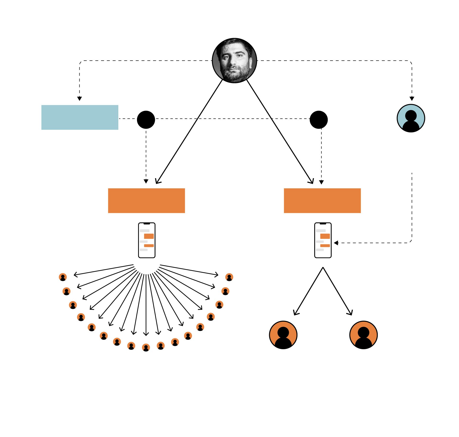 Ai shkoi drejt e lart në dhomën e gjumit ku lindi ideja për perandorinë e tij. Ai nxori telefonin e tij dhe filloi të shkruante një email në lidhje me vendimin dhe çfarë do të thoshte ai për të.