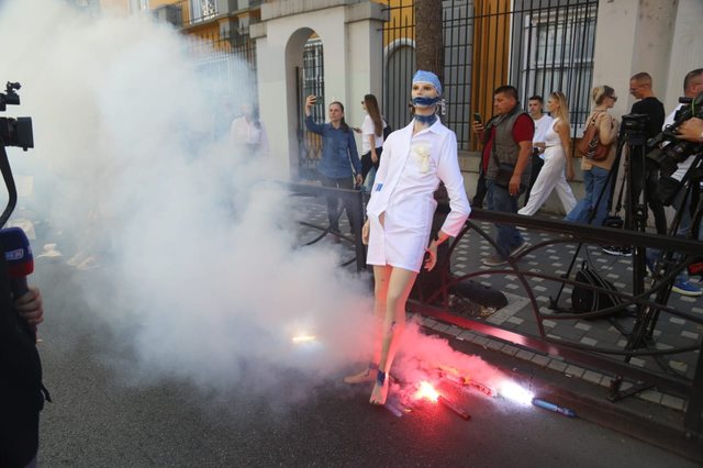 Studentët e Universitetit të Mjekësisë zhvilluan ditën e sotme sërisht protestë kundër ligjit që i detyron ata të shërbejnë për disa në Shqipëri deri në 5 vite pas mbarimit të studimeve ose të paguajnë tarifën rreth 250000 në vit.