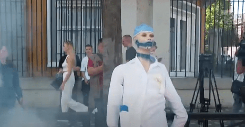 Një pjesë e studentëve kanë lëshuar vezët në drejtim të dritareve duke thirrur “Ministria e Turpit”.