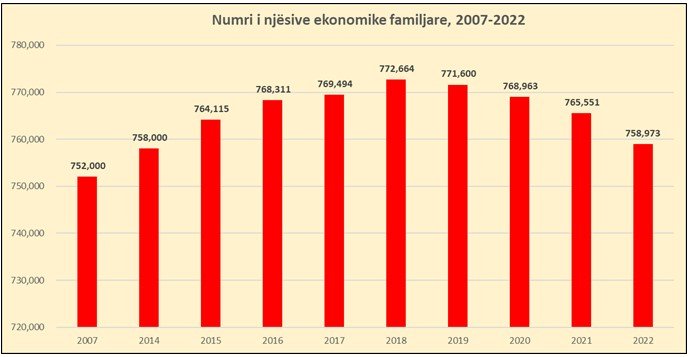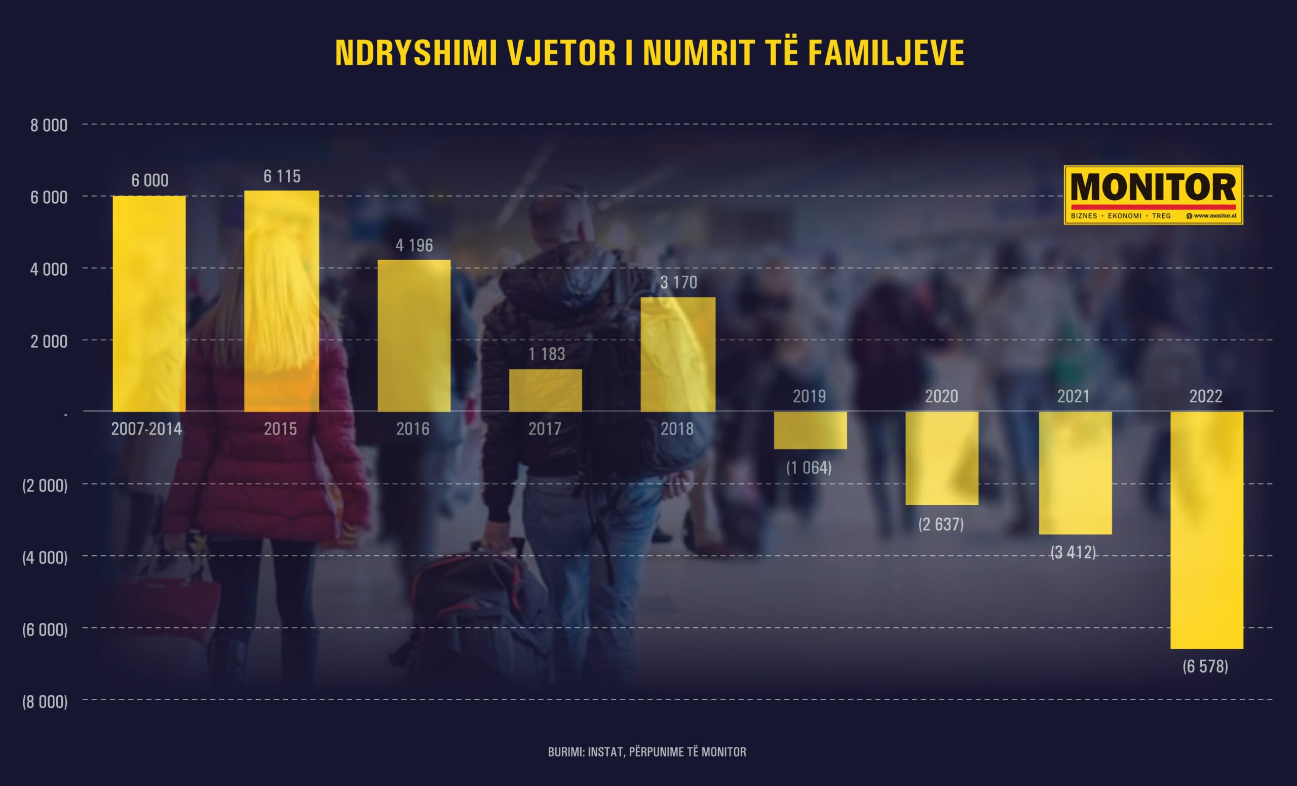 Emigracioni masiv që po vijon edhe në dekadën e tretë të tranzicionit ka nisur të reduktojë edhe numrin e familjeve, të cilat po bien në mënyrë sistematike që nga viti 2019 e deri më 2022 e në vijim.