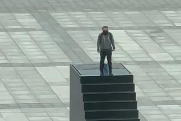 Media polake raportoi se një burrë ishte ngjitur në një monument në shesh dhe po kërcënonte të hidhte veten në erë.