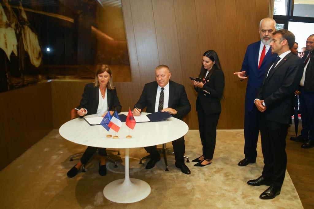 Në ceremoninë e nënshkrimit të marrëveshjes ishin të pranishëm Presidenti i Republikës së Francës Emanuel Macron dhe Kryeministri i Shqipërisë Edi Rama.