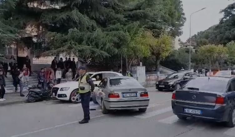 Një aksident ka ndodhur pak minuta më parë përpara shkollës së mesme “Kristaq Capo” në Berat. Një mjet autoshkolle është përplasur me një motor.