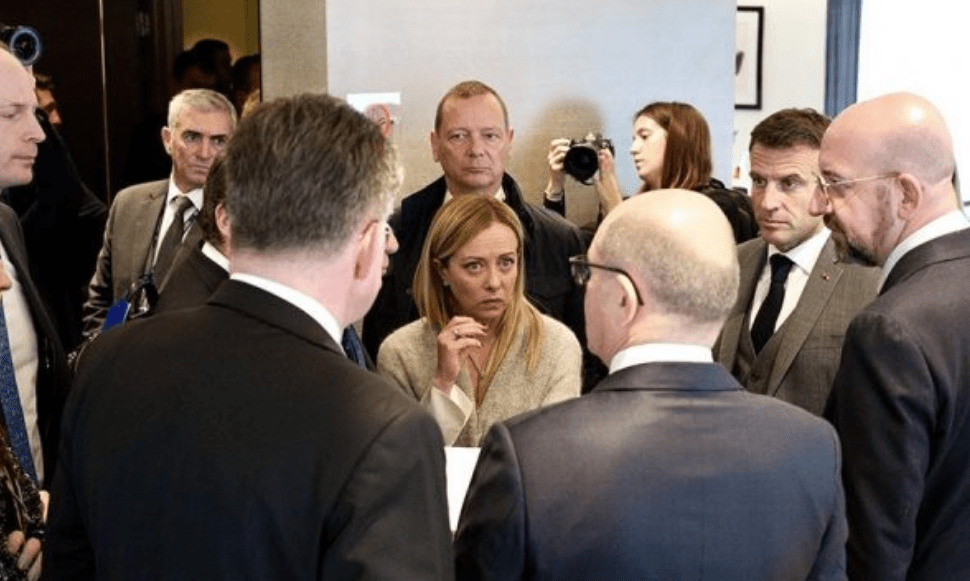 Ne, Presidenti i Republikës Franceze, Emmanuel Macron, kancelari i Republikës Federale të Gjermanisë, Olaf Scholz dhe Presidentja e Këshillit të Ministrave të Republikës Italiane, Giorgia Meloni, së bashku me Presidentin e Këshillit Evropian, Charles Michel, Përfaqësuesi i Lartë për Punët e Jashtme dhe Politikën e Sigurisë/Zëvendëspresidenti i Komisionit Evropian Josep Borrell dhe Përfaqësuesi Special i BE-së për Dialogun Beograd-Prishtinë dhe çështje të tjera rajonale të Ballkanit Perëndimor, Miroslav Lajçak, u takuan me Presidentin e Republikës së Serbisë. , Aleksandar Vuçiç dhe Kryeministrin e Republikës së Kosovës, Albin Kurti, në margjinat e Këshillit Evropian më 26 tetor 2023.
