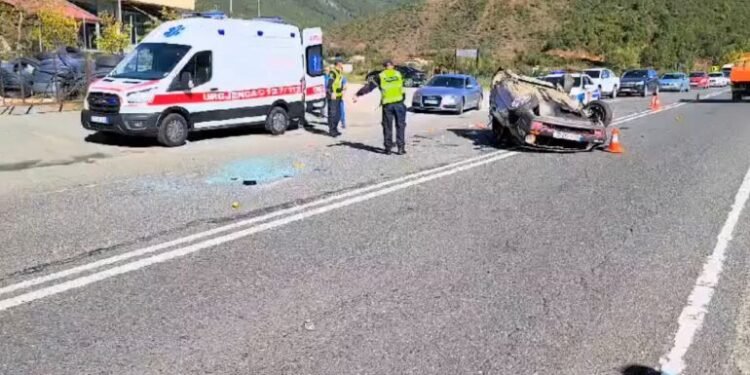 Bëhet me dije se janë përplasur dy automjete. Njëra prej tyre është përmbysur në rrugë.