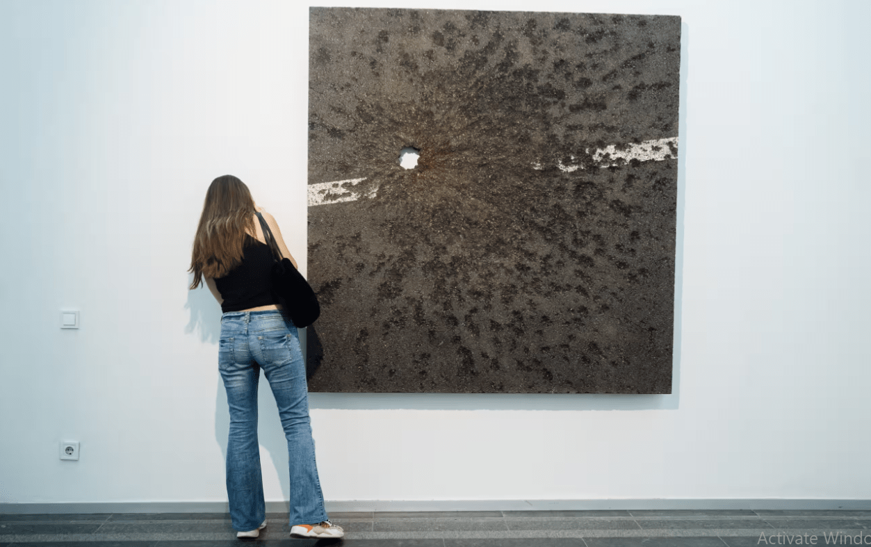 Gjatë procesit të prerjes, ekipi zbuloi një minierë të ngulitur në asfalt. Këto vepra nuk janë një përfaqësim i dhunës, ato janë një gjurmë e vetë dhunës, të nxjerra nga konteksti i saj dhe të vendosura në muret e bardha të një galerie arti.
