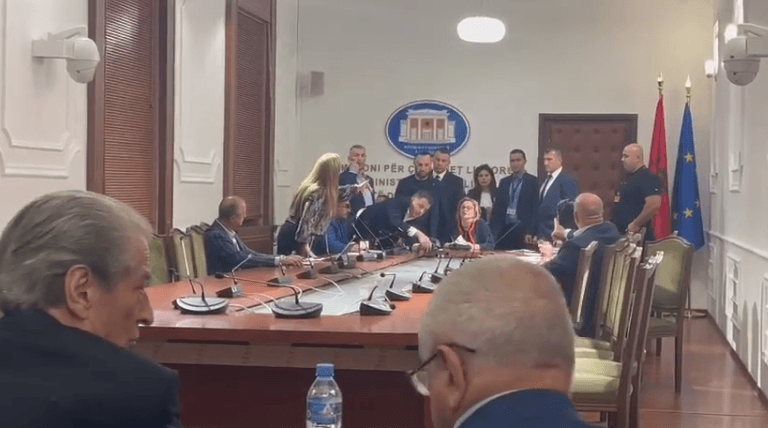 Deputeti i PD, Flamur Noka i ka shkulur mikrofonin Bushkës dhe kolegëve të PS, duke i detyruar të ndërpresin mbledhjen.
