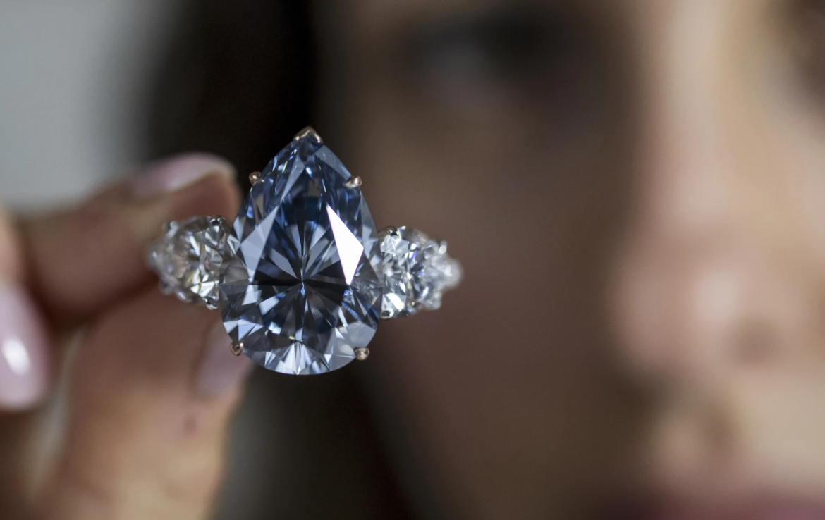 “Bleu Royal” – një unazë që përmban një diamant të zbukuruar blu në formë dardhe prej 17,61 karatësh, ishte një nga pjesët më të spikatura që doli në shtëpinë e ankandit për Javën e Luksit të Gjenevës.